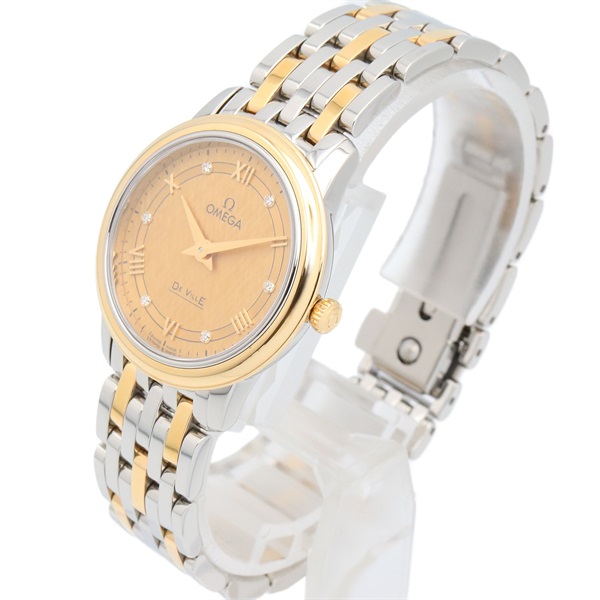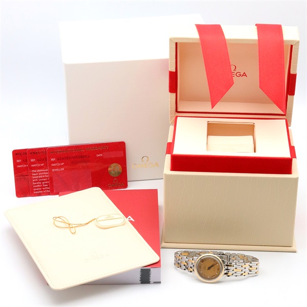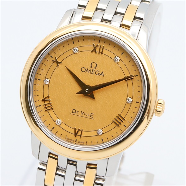 OMEGA De Ville Prestige 6P Diamond Wrist Watch Quartz 18KYG Gold SS NEW Women