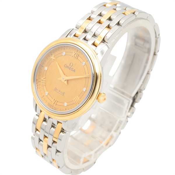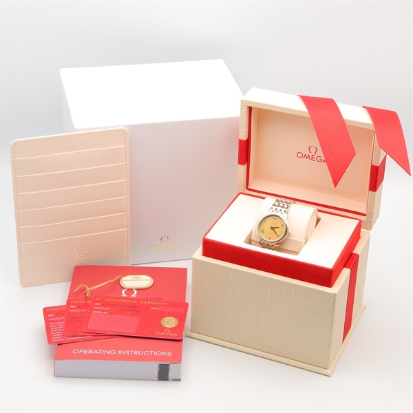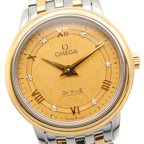 OMEGA De Ville Prestige 6P Diamond Wrist Watch Quartz 18KYG Gold SS NEW women