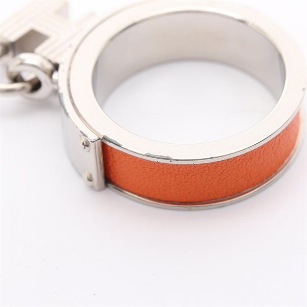 HERMES Kelly H Cadena Scarf ring leather metal SHW Orange Used Women