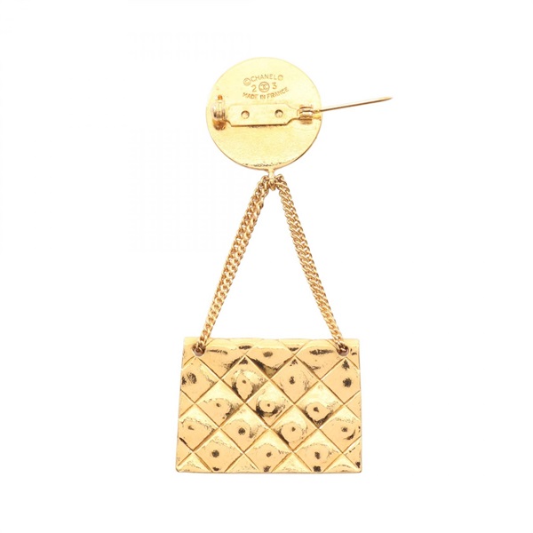 CHANEL COCO Mark Matelasse bag motif Brooch pin Gold Plated Used Women CC