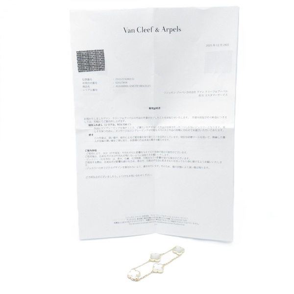 Van Cleef & Arpels Pure Alhambra Mother of Pearl Bracelet 18KYG White 16.5㎝