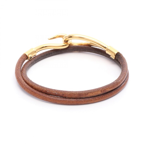 HERMES Jumbo Choker Bracelet Bangle 17.5cm leather Gold Plated Brown Used Women