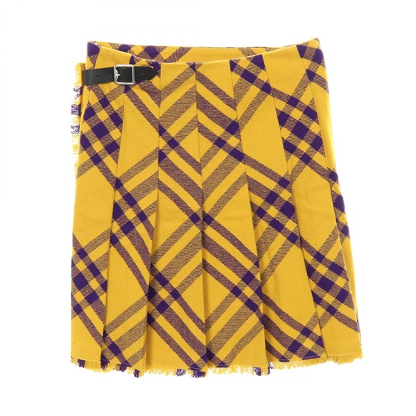 BURBERRY Pleated checked skirt #UK6 wool Yellow Purple Women