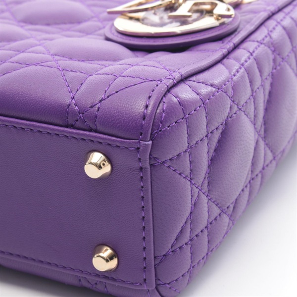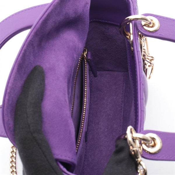 Dior Lady Dior Mini Chain shoulder Handbag leather Purple Used Women