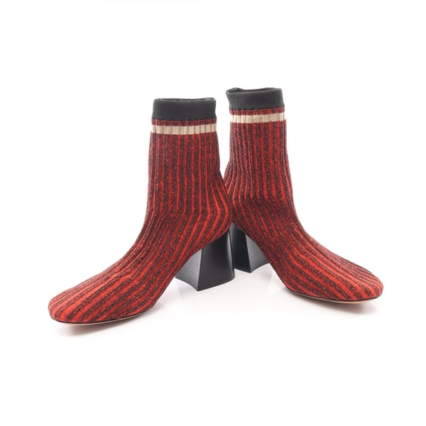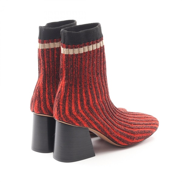 CELINE Ballerina socks Ancre boots Fabric Red Black Beige Used Women size 37.5