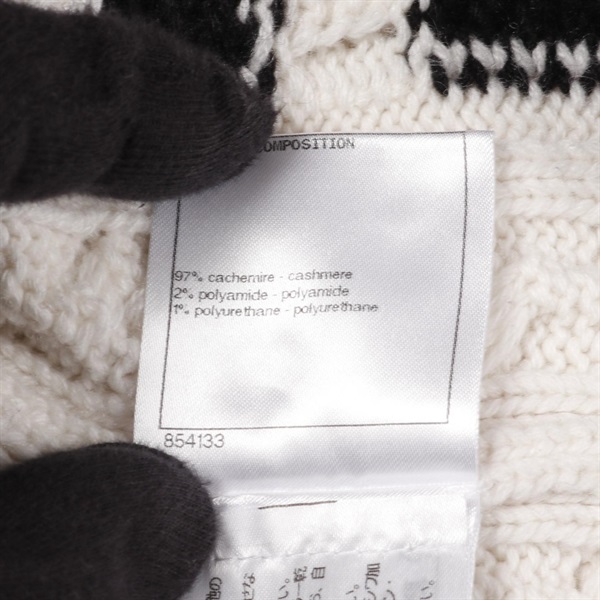 CHANEL COCO Mark Button Knit Sweater P74123K10621 cashmere B&W Used Women #34