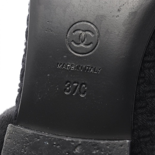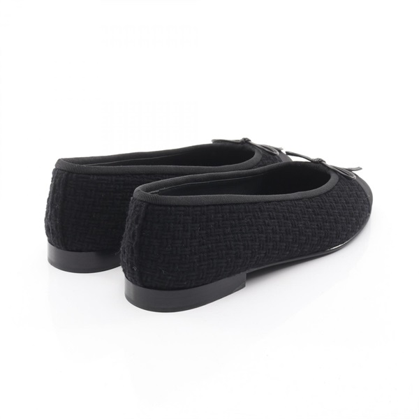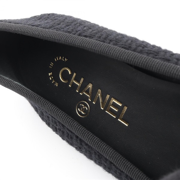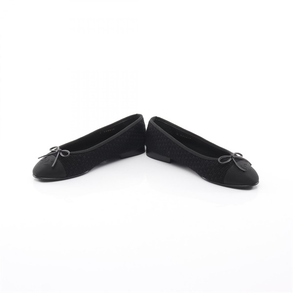 CHANEL BALLERINA COCO Mark Pumps flat shoes #37 G02819 Fabric Black Used Women
