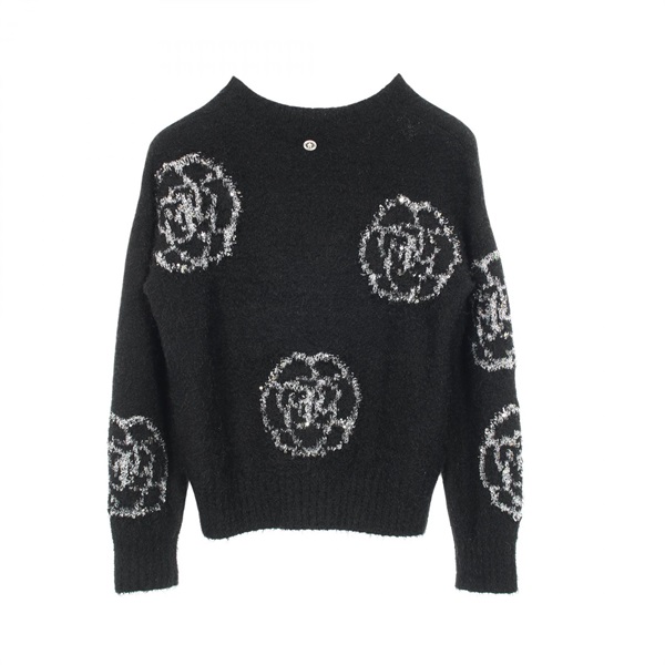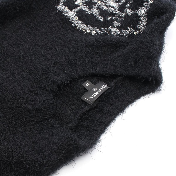 CHANEL Camelia knitwear Sweater silk cashmere wool Black Used Women size 36 CC