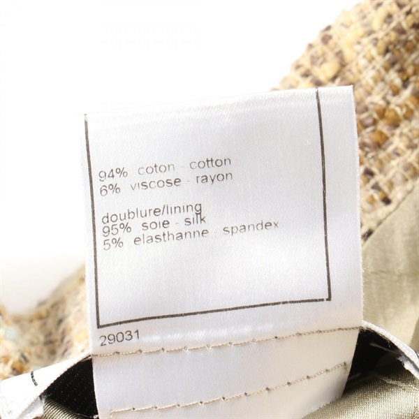 CHANEL Tweed tailored Jacket P20630 cotton Beige Khaki Used Women size 38