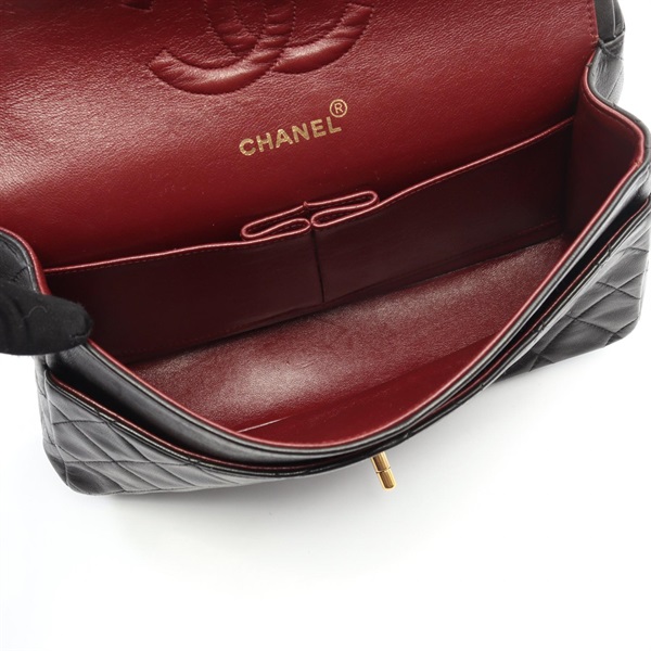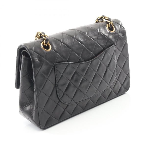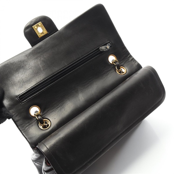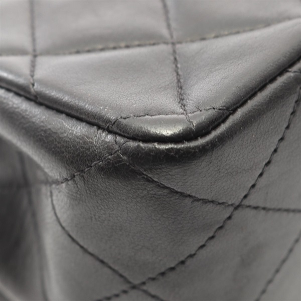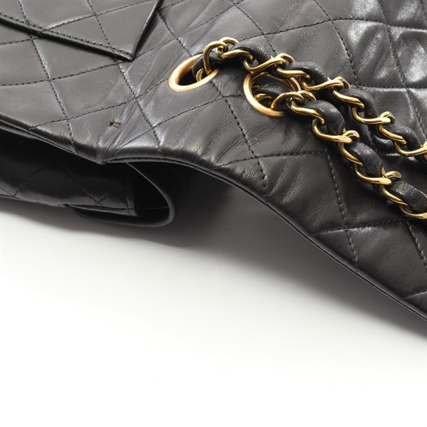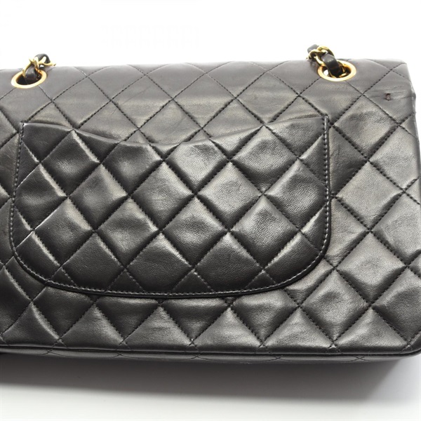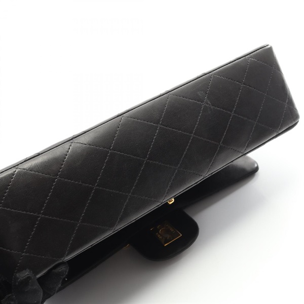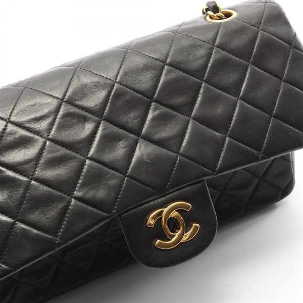 CHANEL Matelasse W flap Chain Shoulder Bag Lamb sheep leather Black Used GHW CC
