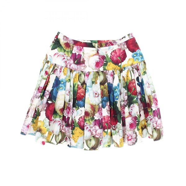 DOLCE & GABBANA Floral print Mini Pleated Skirt cotton White Multicolor #40