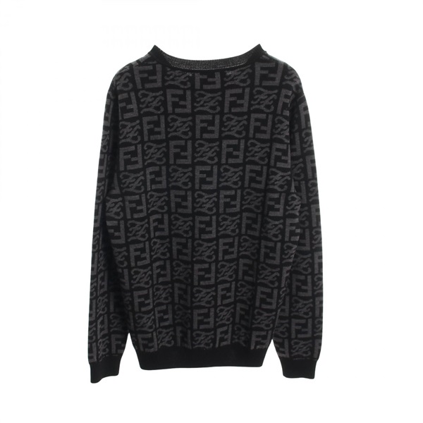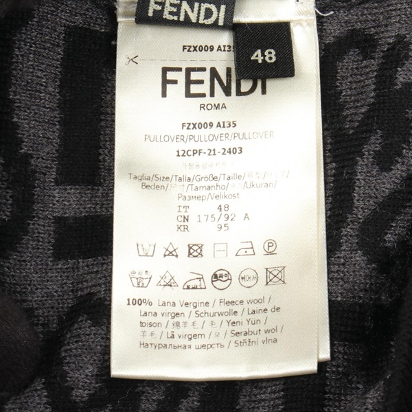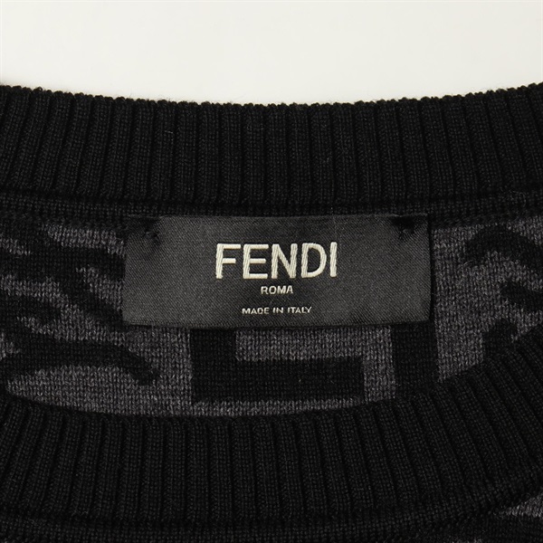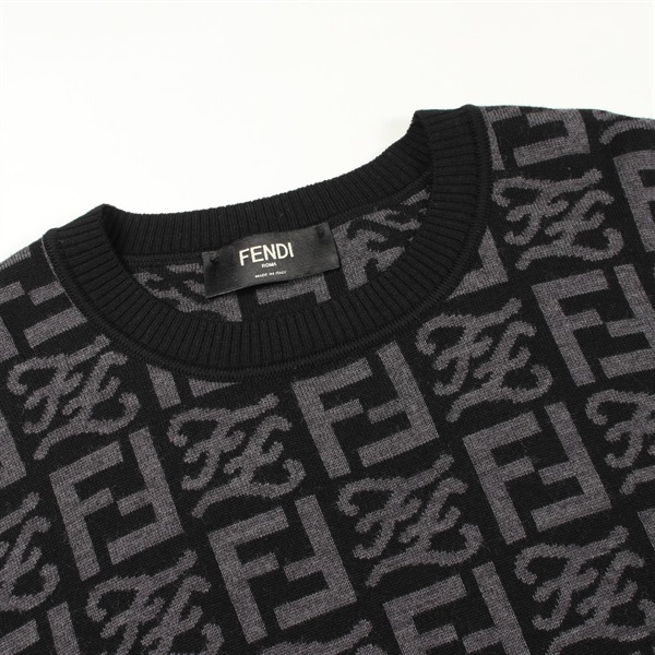 FENDI FF logo print crew neck knitwear sweater #48 wool Black Gray Used mens