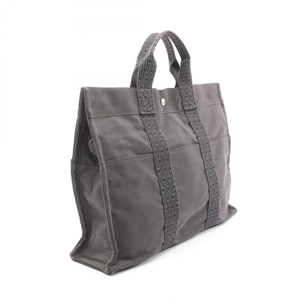 HERMES Herline MM Tote hand Bag Nylon canvas Gray Used unisex SHW