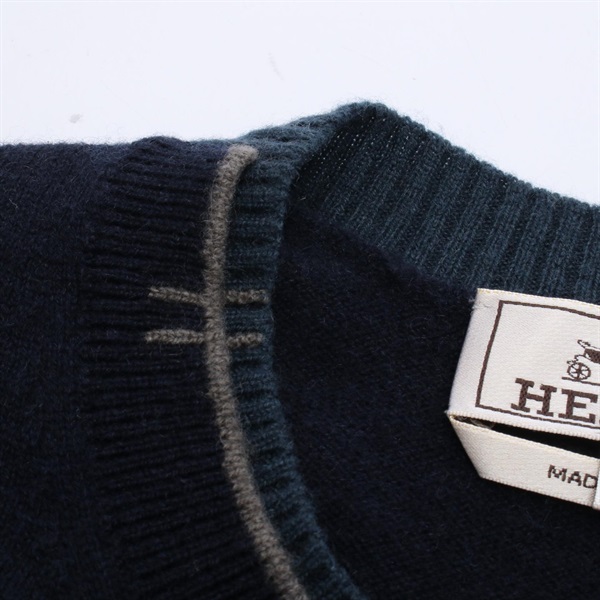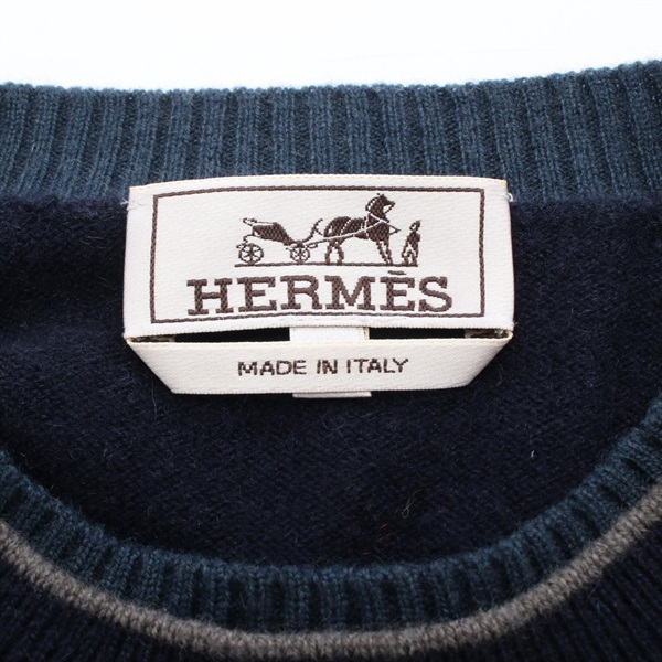 HERMES Knitwear Sweater cashmere Navy Gray Green Used mens size XS