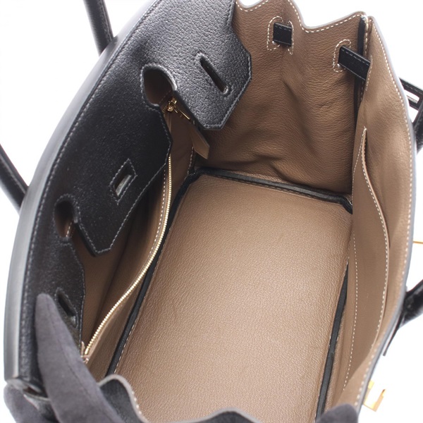 HERMES Birkin 30 Verso Handbag Chevre Black Etoupe Grey Used Women GHW C