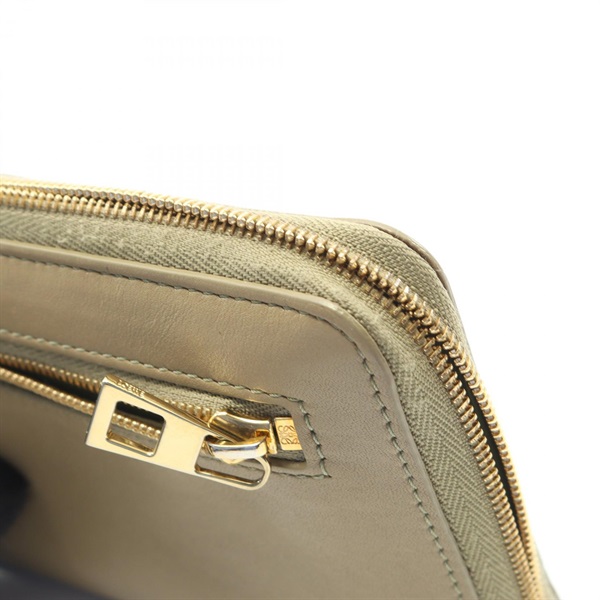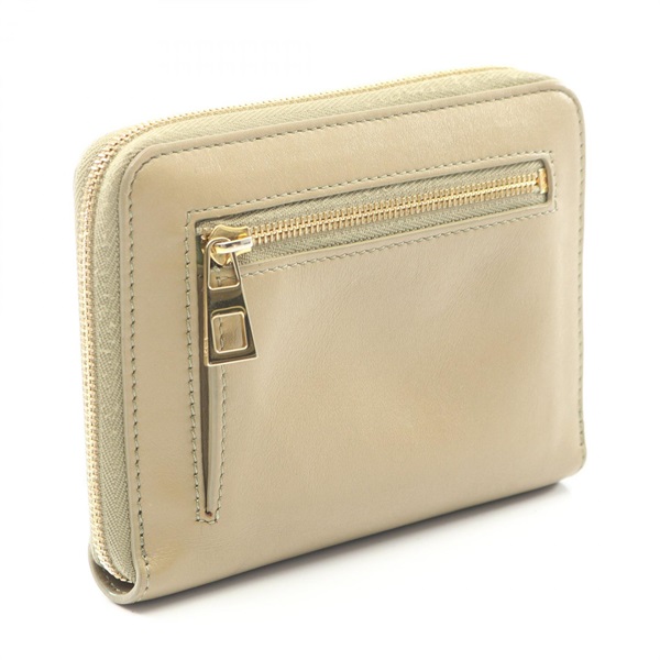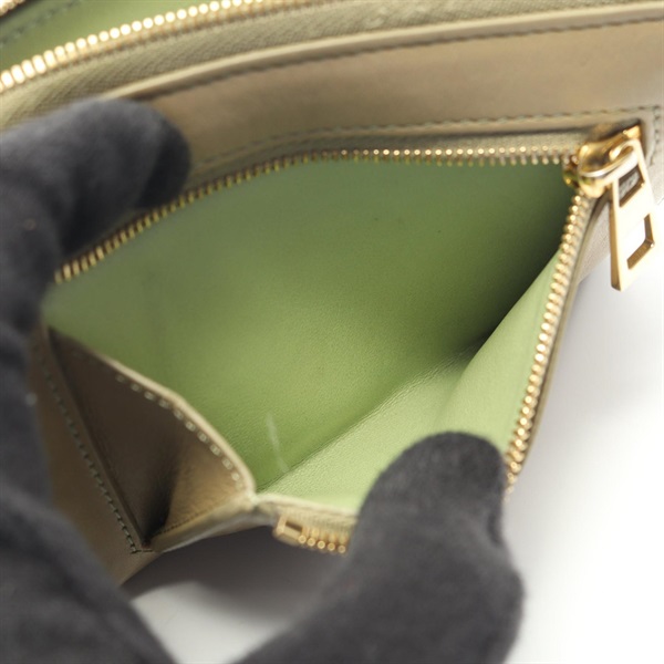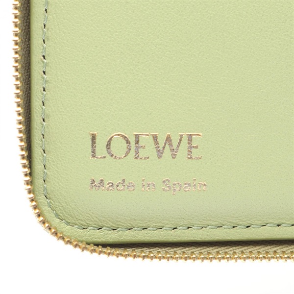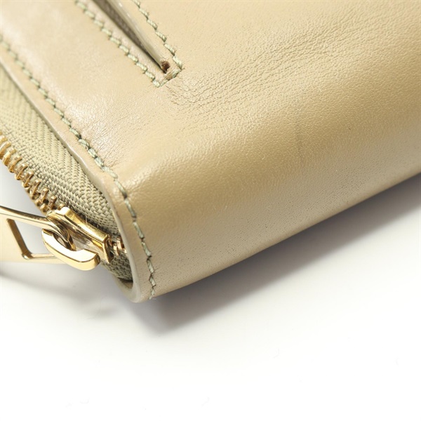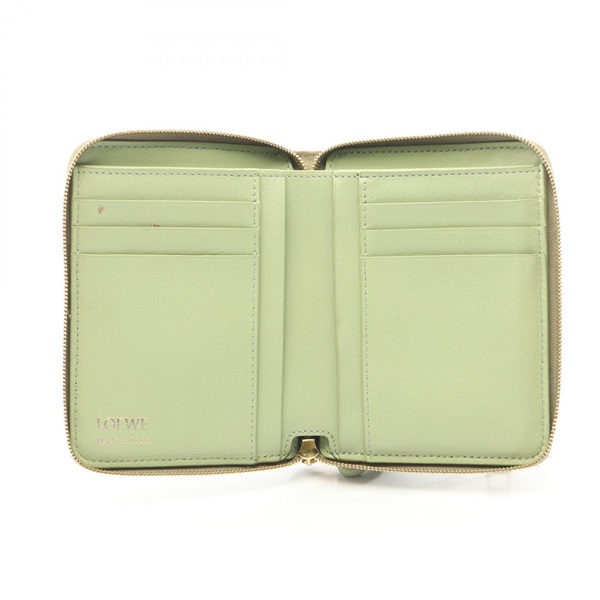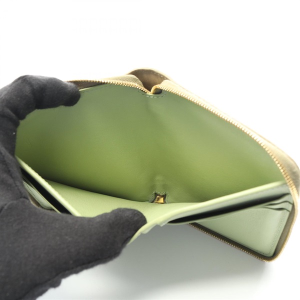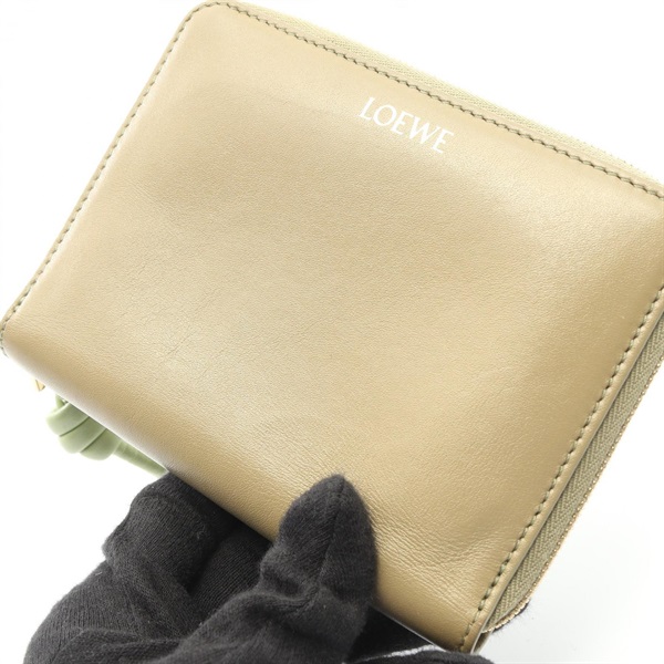 LOEWE Knot Compact zip Aound Wallet Purse leather Beige Green Used Women