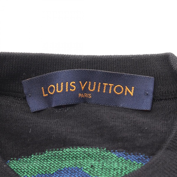 LOUIS VUITTON Barcode and earth knitwear RM192M wool Black white Used mens #XS