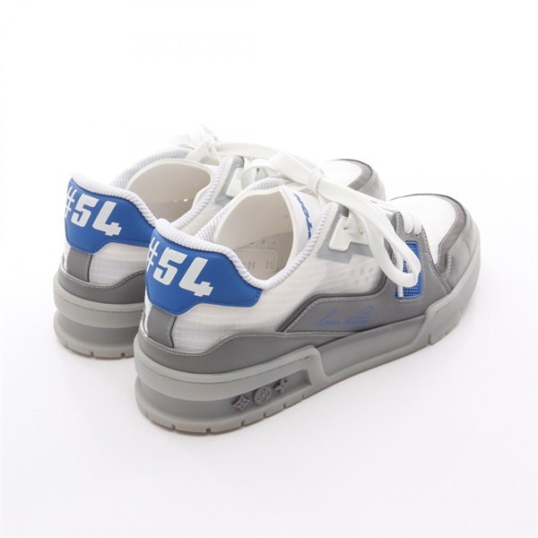 LOUIS VUITTON LV Trainer line Sneakers Shoes #5 1/2 Fabric White Gray Blue Used