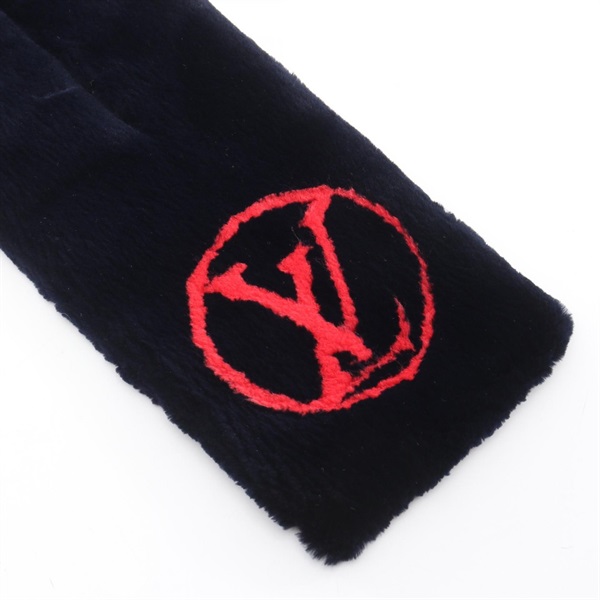 LOUIS VUITTON Echarpe LV Stamp Scarf stole wrap M730241 fur Navy Pink Used Women