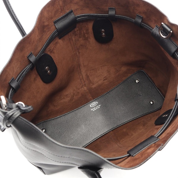 TOD'S DI Drawstring Shoulder Handbag leather Black Used Women