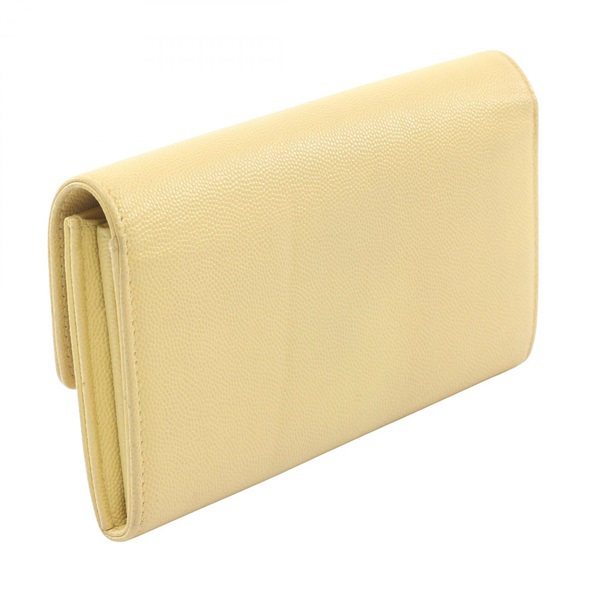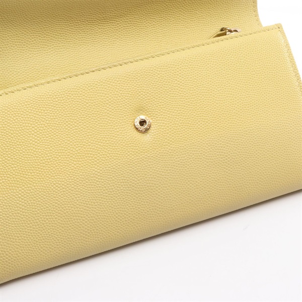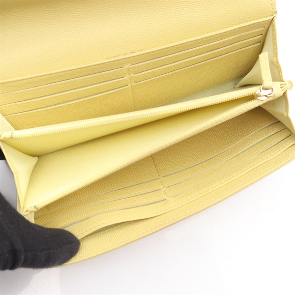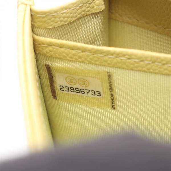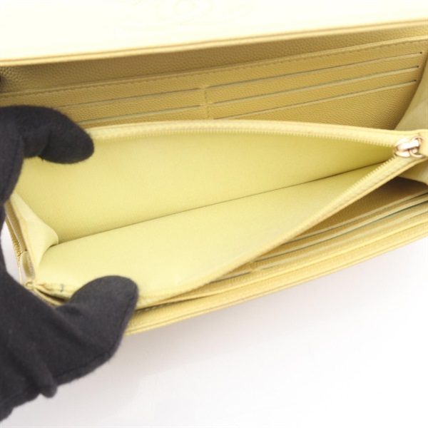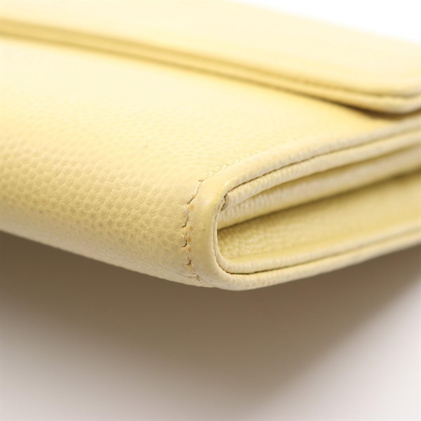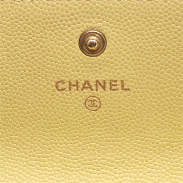 CHANEL COCO Mark Bifold purse wallet Grained calf leather Yellow Used Women GHW