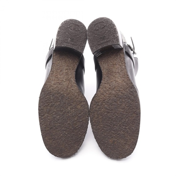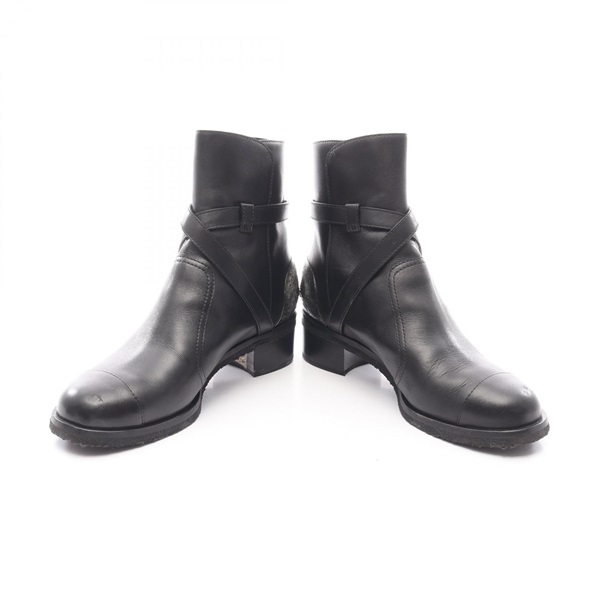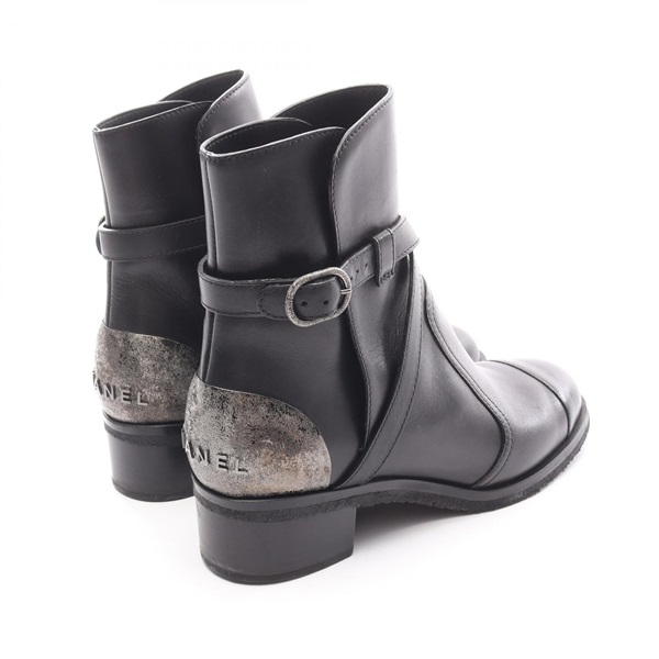 CHANEL Short boots G28694 leather metal Black Silver Used Women #38 CC Coco