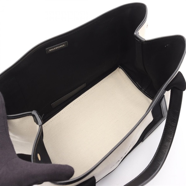 BALENCIAGA NAVY CABAS S Tote Handbag 339933 canvas leather Beige Black Used